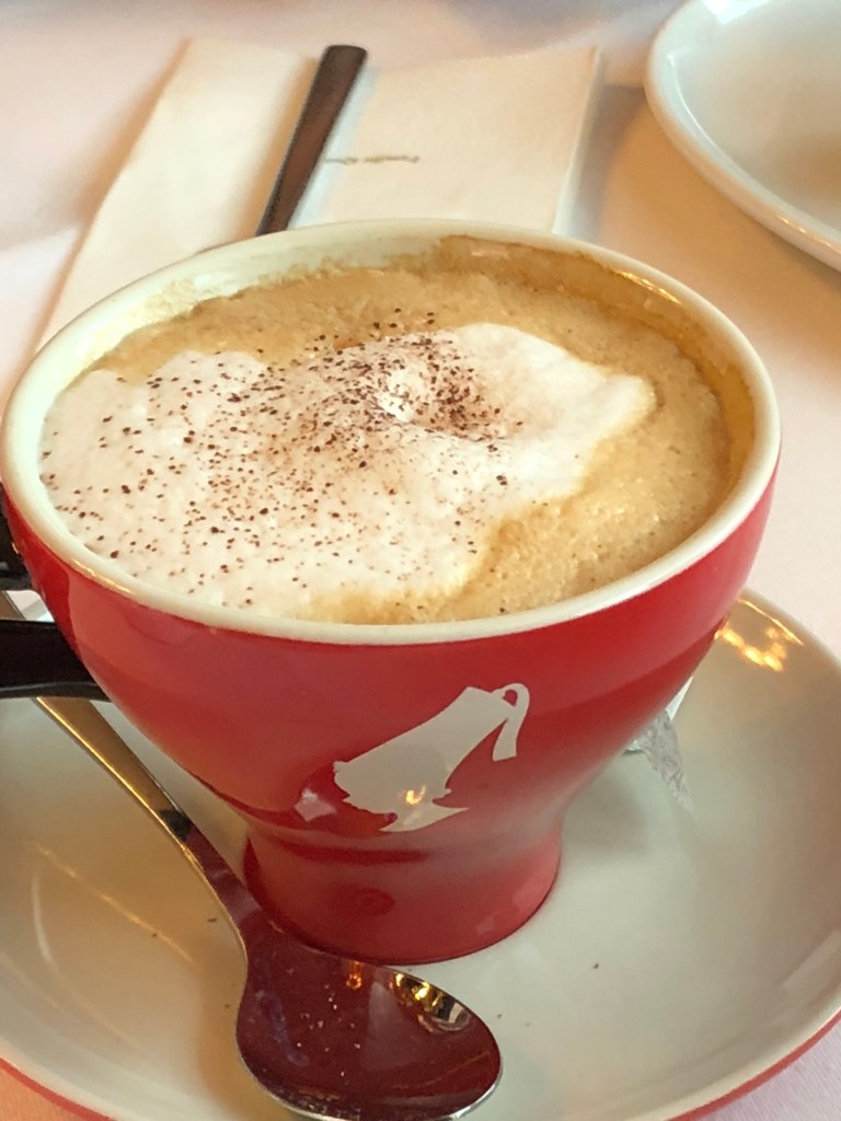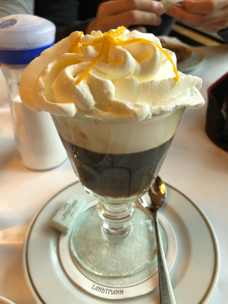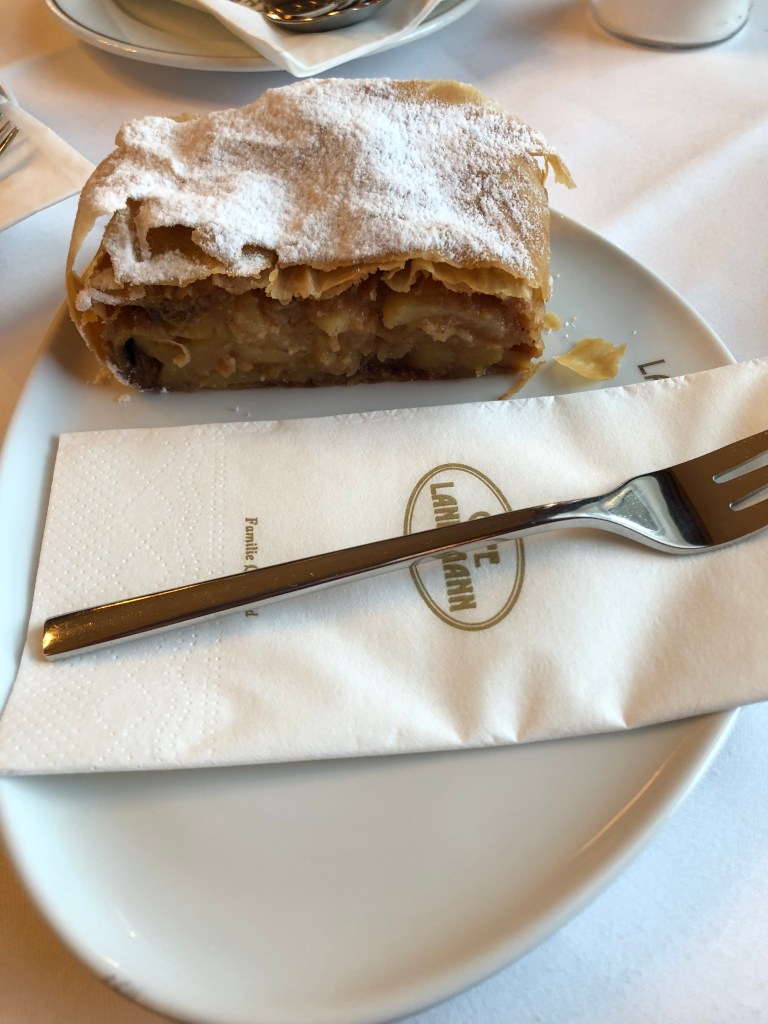 Vienna’s other strong point is in coffee and pastries. We took the opportunity to indulge in both at Cafe Landtmann, a famous spot near Rathausplatz where Freud used to frequent. One of my friends got a cappuccino which came with much more foam than one in say, Australia would have. I opted for a coffee variant that was topped with orange and whipped cream. Coffee purists would turn their noses up, but sugar fiends will love it! The pastry game was pretty strong too. One pastry in particular is most iconic: the apple strudel. Layers of pastry dough with roasted apples and sauce in between, usually topped with powdered sugar and whipped cream. It’s both hearty and filling, but doesn’t leave you with quite as much of a sugar rush as the city’s more decadent cakes. I certainly didn’t need the amount of whipped cream that came with my coffee, so I actually ended up ordering my strudel without the cream to save money, and then took it from my coffee! Then my friend Joel did the same. How’s that for frugal travel?