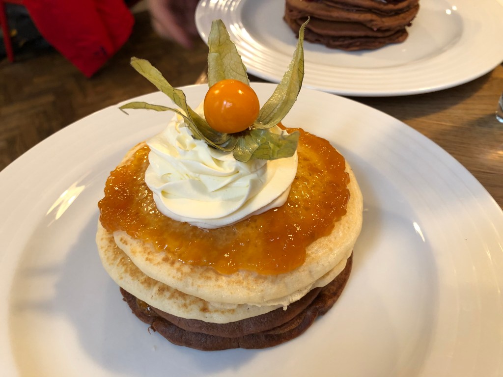 Of course, everyone agreed that the real culinary highlight was going to Den Noc for pancakes. Our first pass through we didn’t arrive until 11 a.m. or so, and had to wait 15-20 minutes for a table. It went quickly and we were seated and had ordered before long. But only the coffee and wine that I’d ordered came right away. Our food took so long that I ordered another glass of wine, which was brought promptly. And then another… although at this point the rest of my party was getting irritated with waiting. When the waitress came back with my third glass, I asked politely how much longer they expected our food to take. She went back to check with the kitchen, and her response upon returning was: “Apologies, but we had forgotten about your food. It is starting to be made now”. It’s the most blunt I remember a restaurant ever being about an error. Also, did they really just think we were there for one of us to sip wine for an hour? Anyway, there was a lot of huffing and puffing and one friend pledged to leave a bad review after we’d eaten. Little did we know we would be eating our words with the pancakes once they came out, though! They were light and fluffy, and provided the perfect bedrock for the toppings we had. My favorite savory one is probably the one with bacon, avocado and feta cheese on top. Another good one had a light sour cream beneath a bed of prosciutto and cherry tomatoes. The undisputed star of the show, though, was Den Noc’s specialty pancakes, half of them chocolate, beneath a layer of apricot jam and topped with whipped cream. They were so good that my friend and I ordered them again while we waited for his emergency passport to finish processing. Out of all the dishes we tried, it was the one that my friend recreated for us and his family once we’d returned home. And when I returned to Prague with my family two years later, we stopped here not once but twice. Although I ordered wine again, they did not forget our food again!