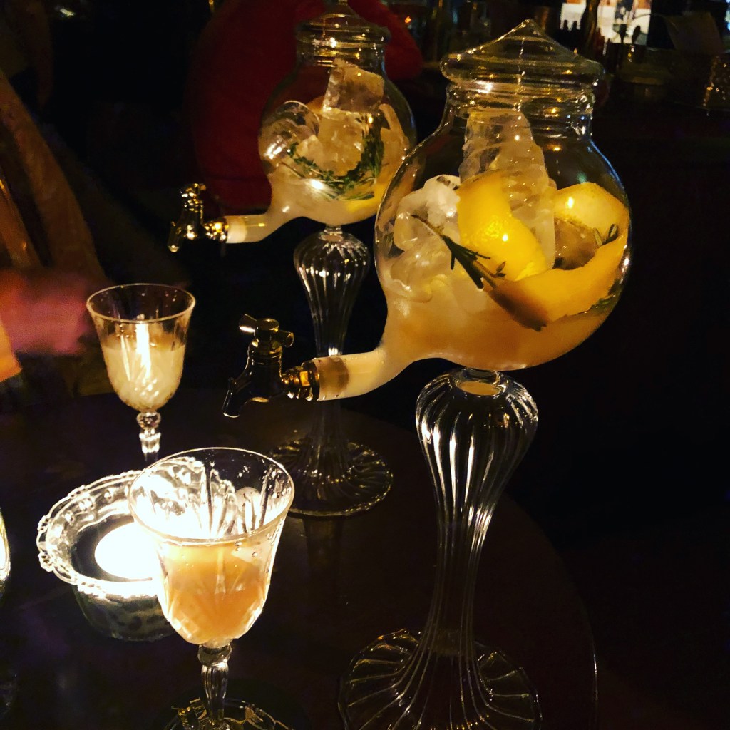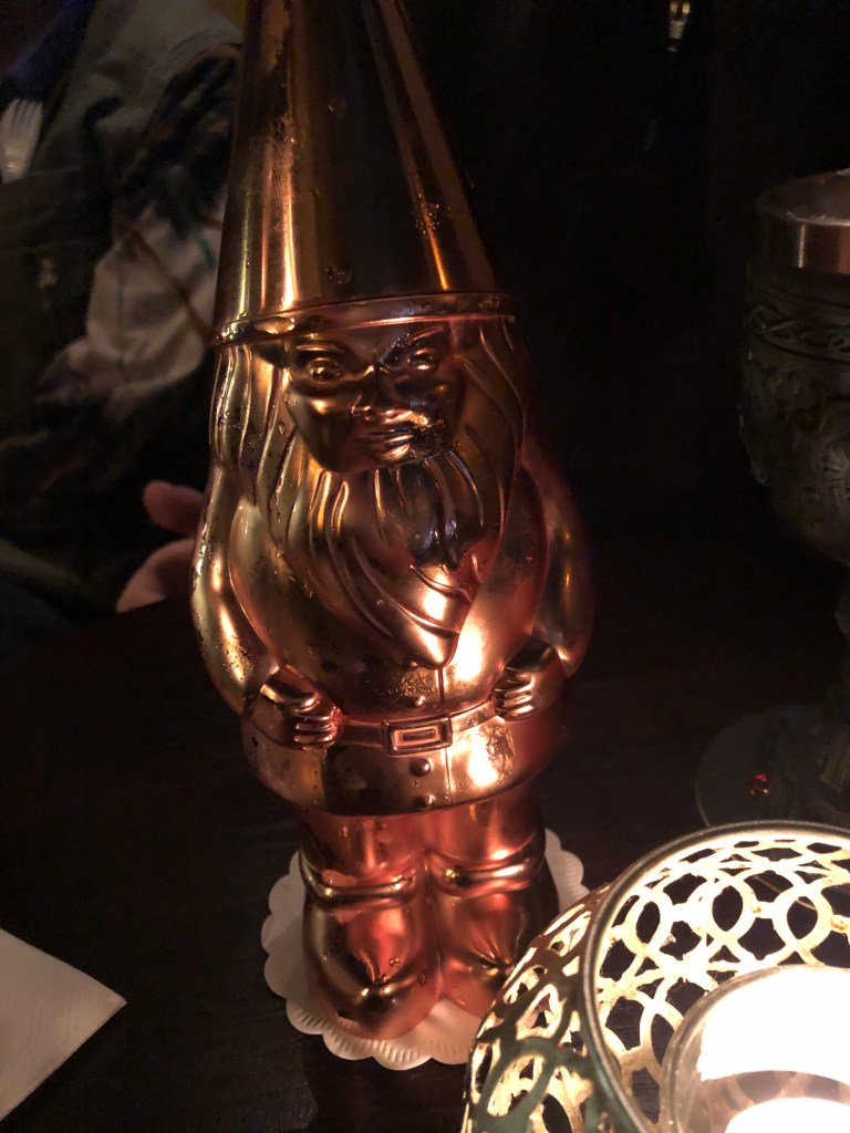 Our last stop in Prague was one of several Hemingway Bars around the world. They’re known for creative themed cocktails, which I’m a huge fan of! (They also carry hundreds of brands of extremely rare liquors, including some very rare bottles, but those are frankly out of my budget). On this first visit I sampled both the light side and dark side cocktails, the former of which came in a mug styled after the droid R2D2. I would have purchased the cup, but that sadly wasn’t an option. Next was probably the fanciest serving contraption I’ve ever seen for a cocktail, a styled glass dispenser. Because the drink was heavy with absinthe, they pack the dispenser with ice so that it’ll weaken slightly as time goes on. I’m sure many a customer has appreciated this in retrospect, but for me it was just something else of note. Their menu does change every now and then, and when I returned with my family they had ones themed for Game of Thrones and Garden Gnomes. We also opted for a light limoncello drink that came with a scoop of sorbet. Except for more outlandish creations like the GOT foam, quality craftsmanship shone through in each of these drinks. It’ll probably be awhile until I find myself in another one, but when I do I cannot wait to see what they come up with next!