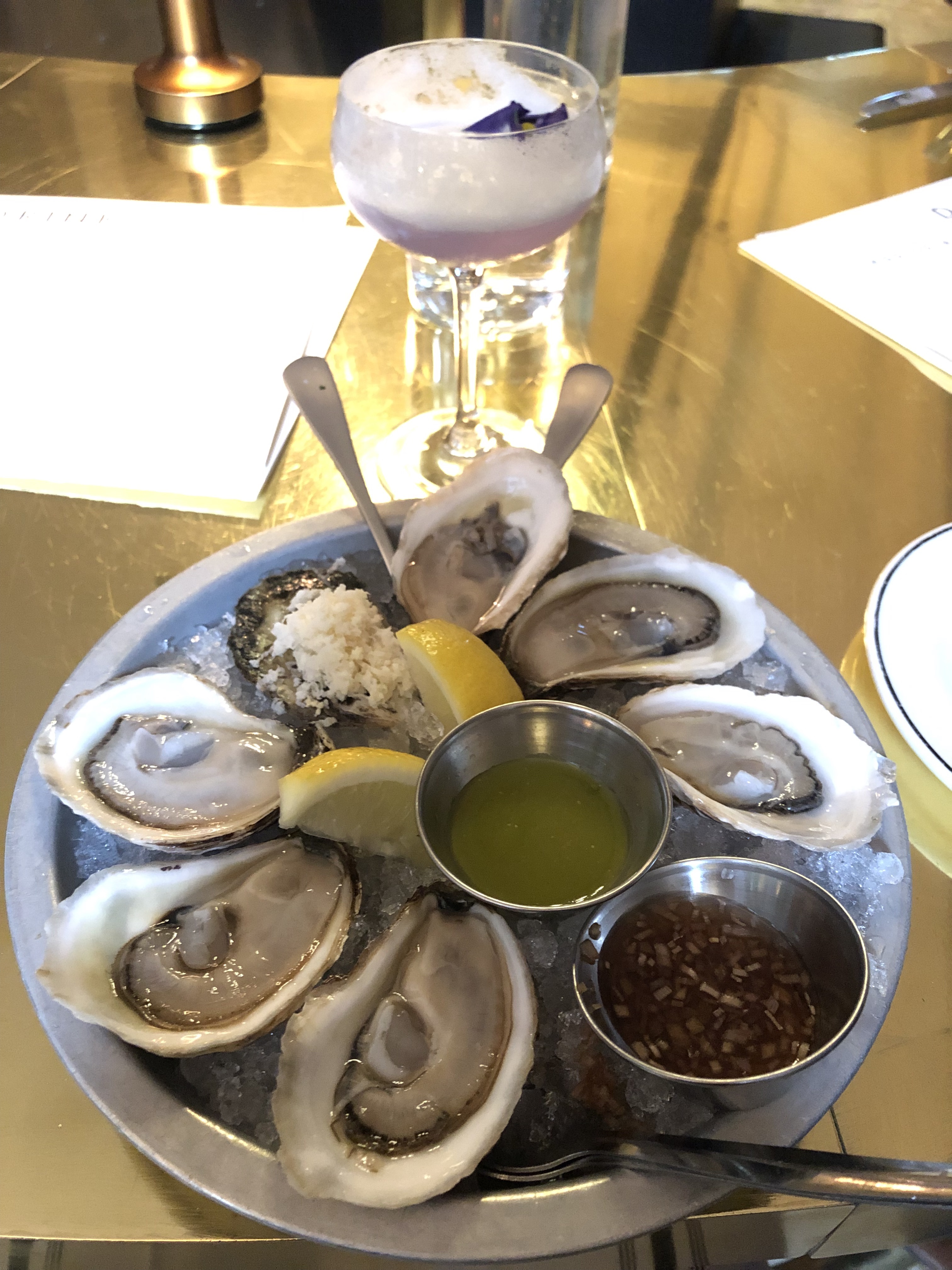 I typically don’t repeat restaurants on a single trip to a place, since there are so many other choices. However, I wanted to pick a special dinner for my last night in Ottawa. Despite doing research on several other nice restaurants, I kept coming back to the menu from Riviera, especially their drinks menu which I was now allowing myself to try. So after I was done with my day’s activities, I found myself right back at the bar at Riviera, better dressed in a button down and jeans this time. Despite trying new places usually being a more immersive and exciting experience, there’s still such a satisfying feeling of sitting down at a restaurant and knowing for sure that you can expect a fantastic meal. Riviera delivered yet again, starting with my first drink. It was based with lavender and a smooth gin, and the foam on top encapsulated the lighter flavors of the drink just perfectly. Lavender is one of the most soothing flavors to me, and this drink did just that. I also decided to order the half dozen oysters, as I was actually closer to the Brunswick and PEI regions that produce some of the best ones. With just a couple drops of lemon juice each, they were absolutely delicious and creamy. I was smiling the whole time, glad I was lucky enough to enjoy my last meal in such a special city this much. I followed that up with beef tartare, which was good for what it was, but after a couple more tries later on I’ve decided that this dish is not for me. I switched back to seafood after that, ordering a plate of scallops with lemon juice and cream served under a bed of bitter vegetable stalks. These were on par with the oysters, smooth and bursting with flavor. The vegetables provided a nice break, but I ate them first so that I could end with the wonderful scallop flavor. For desert, I was originally planning to just order a local ice wine and have that be it. However, I saw a Duth vermouth on offer that was under none other than my first name: Willem. I had to order it. It and the ice wine both have their sweet notes, but each has a unique undertone. The ice wine tastes more fresh and crisp, while the vermouth is smoother and left a strong aftertaste. I took my time sipping on these, watching the restaurant’s clientele filter in and out. All got the dress up memo better than I did, and I saw everything from couples on dates, to businesspeople clustered at larger tables, to a few singles at the bar who seemed to know the staff quite well. Because the kitchen is right behind the bar, most of the kitchen staff passes near each bar customer at some point. My first night, I was in front of the grill station and it was fascinating to watch the guy work so confidently with the flames, and time his cooking of the meats so well. The second night I was at the end near the bartender, who was up for chit chat a lot more than the busy cooks. He asked if I’d run any races that weekend, and I got to proudly tell him that I’d finished the marathon! It’s always a nice extra touch when the restaurant staff is curious in those ways, and looks for opportunities to banter with solo diners. Well, I’ve talked glowingly enough about my experience, so let’s go through the pictures now…