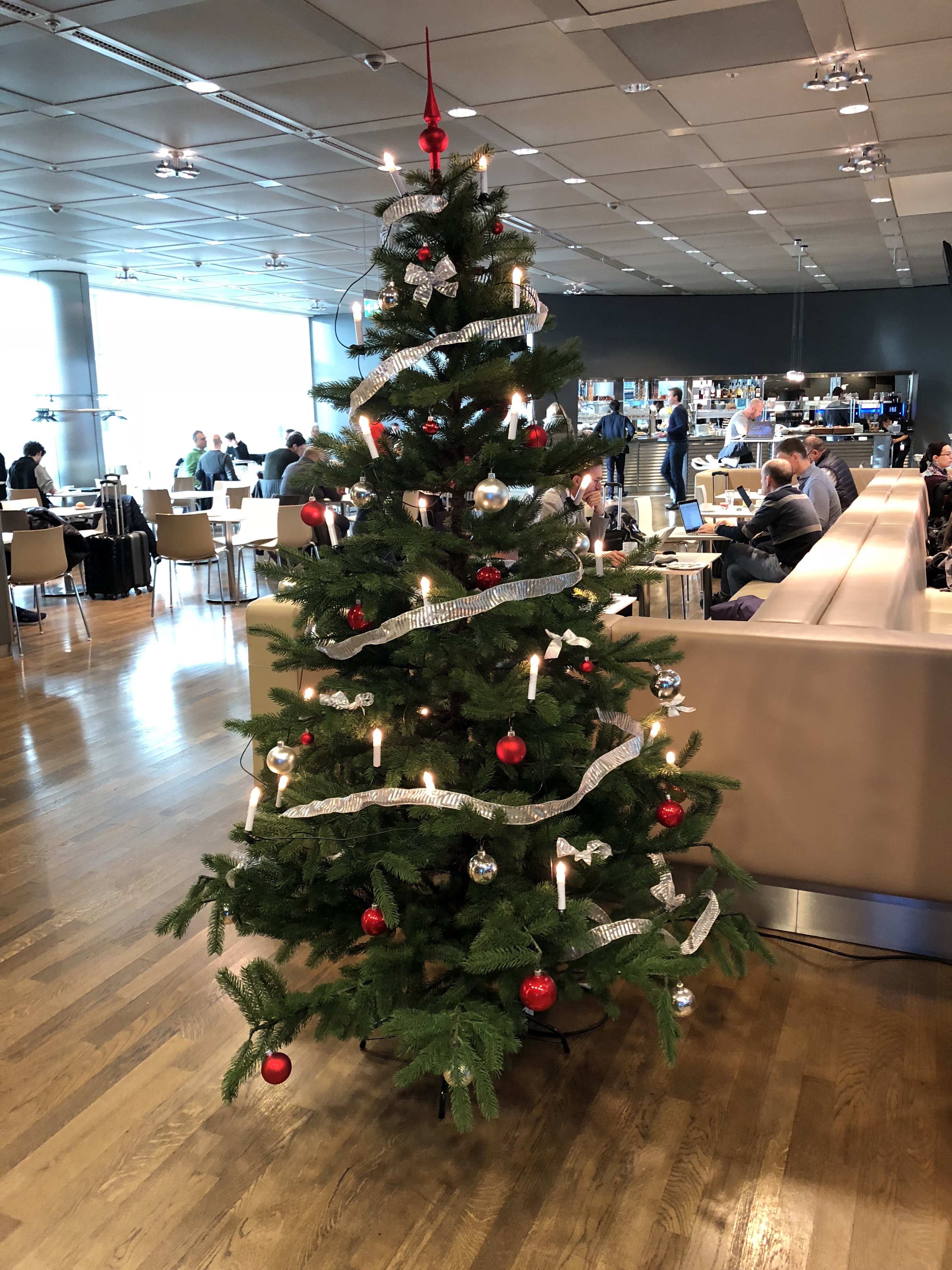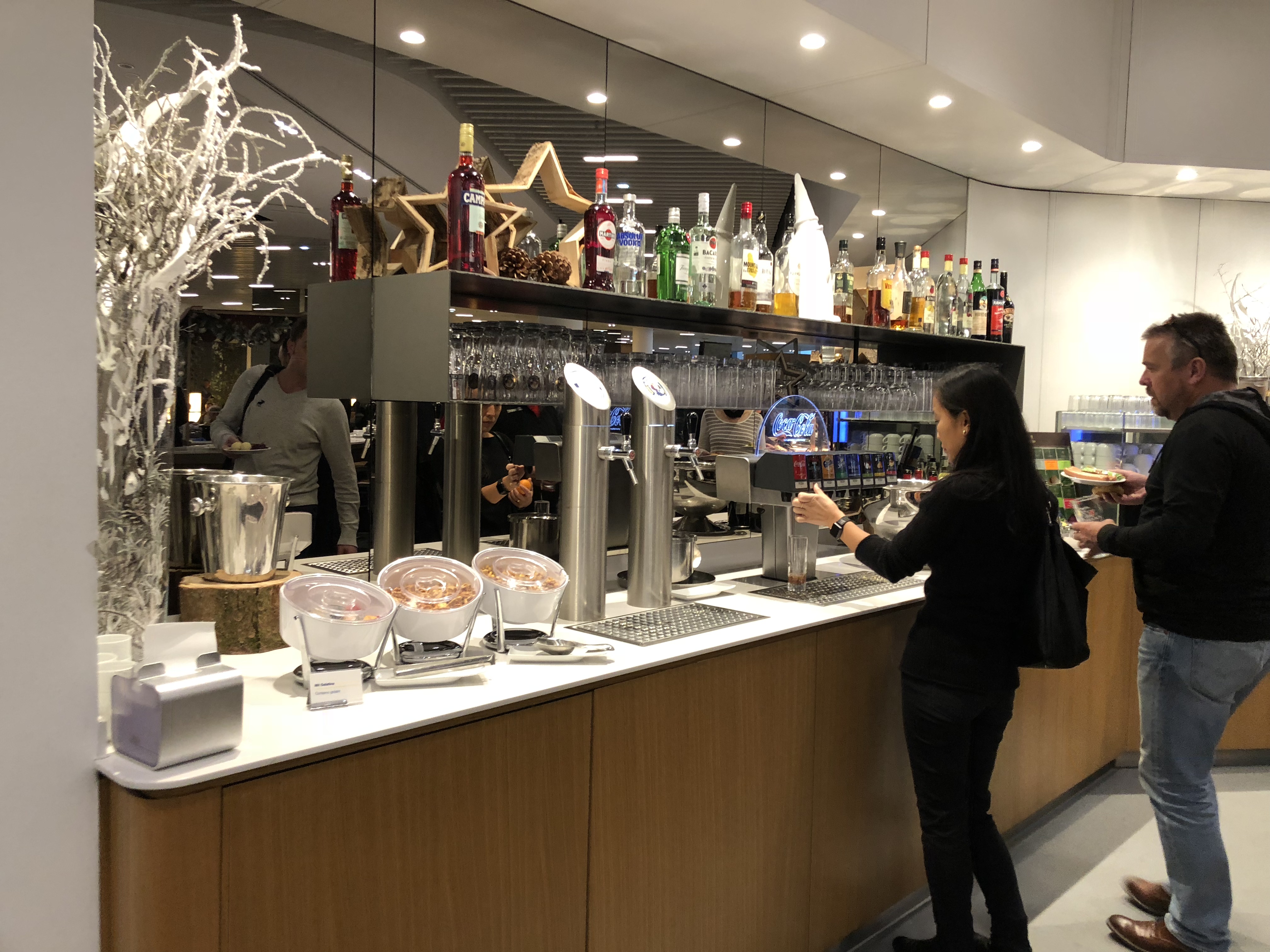 The lounge was in breakfast mode, with fruits, cereals, yogurt and granola being the main offerings I saw. The fresh fruit spread was heavy on fall apples, which I was happy to indulge in. I didn’t eat much else ahead of my flight though. Being 9 a.m. on a Sunday, the lounge wasn’t overcrowded but the most comfortable seats were already taken. After all, an enormous number of people have access to this lounge each day. There was a Christmas tree up, but the lounge wasn’t decked out any more than that for the holidays. Since I had a little more time to kill, I decided to explore the alcohol selection. In a first for me, there was beer on tap and I decided to give it a shot. Well I starting pouring and got more, and more, and more… foam! My glass ended up being 95% foam… and I was suddenly glad my friends weren’t here to see me making a fool of myself. Soon after that, my flight was ready for boarding and I left.
