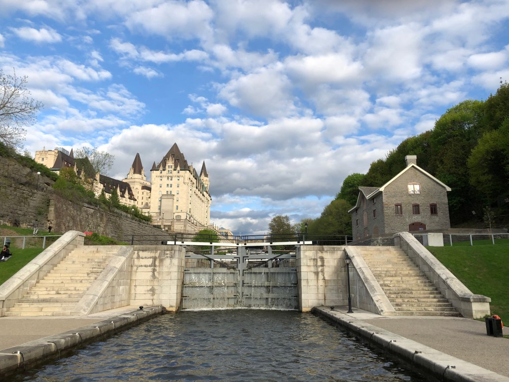 Along that run, I also saw a couple other lovely landmarks. The first was the Rideau canal, and the locks that ran down to the Ottawa river. It’s hardly used now, but the canal was instrumental in the town’s early days for transporting logs and other goods up the Rideau river south of the city. Most Canadian cities have a Fairmont chateau, a staple of the trans Canada railway companies that built across the nation in the late 1800s, and Ottawa’s sat overlooking the Rideau locks. It was the perfect location for such a regal hotel.