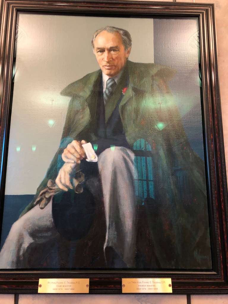 Right on time, I was able to enter the tour of Ottawa’s parliament building. It was led by a student from Montreal’s McGill University, who was on break from university. The official chambers were closed for renovation, so we were given a tour of the alternate buildings being used in their stead. The chamber itself is known as the House of Commons, the only name used now that something aristocratic like House of Lords has fallen out of fashion. The guide kept prefacing each politician’s name with “the right honourable”, which is apparently a custom there. It’s something I can’t imagine happening in the United States these days. Anyhow, another interesting custom she mentioned was the presence of a rifleman that was assigned to sit next to the Speaker of the House of Commons. It’s probably not necessary now, but in Canada’s early days the speaker was often charged with passing on unfavorable news to the British government. This meant that assassination attempts were frequent, hence the assigned guard. Lastly, portraits of various Canadian prime ministers lined a couple of the hallways. I recognized some of them because they had lent their names to airports, like Pierre Eliot Trudeau for Montreal’s airport, or Pearson for Toronto’s and Jean Lesange for Quebec City. Ottawa’s airport bears the Macdonald-Cartier name, two of the joint “founding fathers of Canada”. The chambers reminded me more of the Hungarian parliament than the United States capitol setup, in that it was more cozy and compact than that other chamber. The seats looked plenty comfortable enough to work in, and I suppose that’s the most important part.