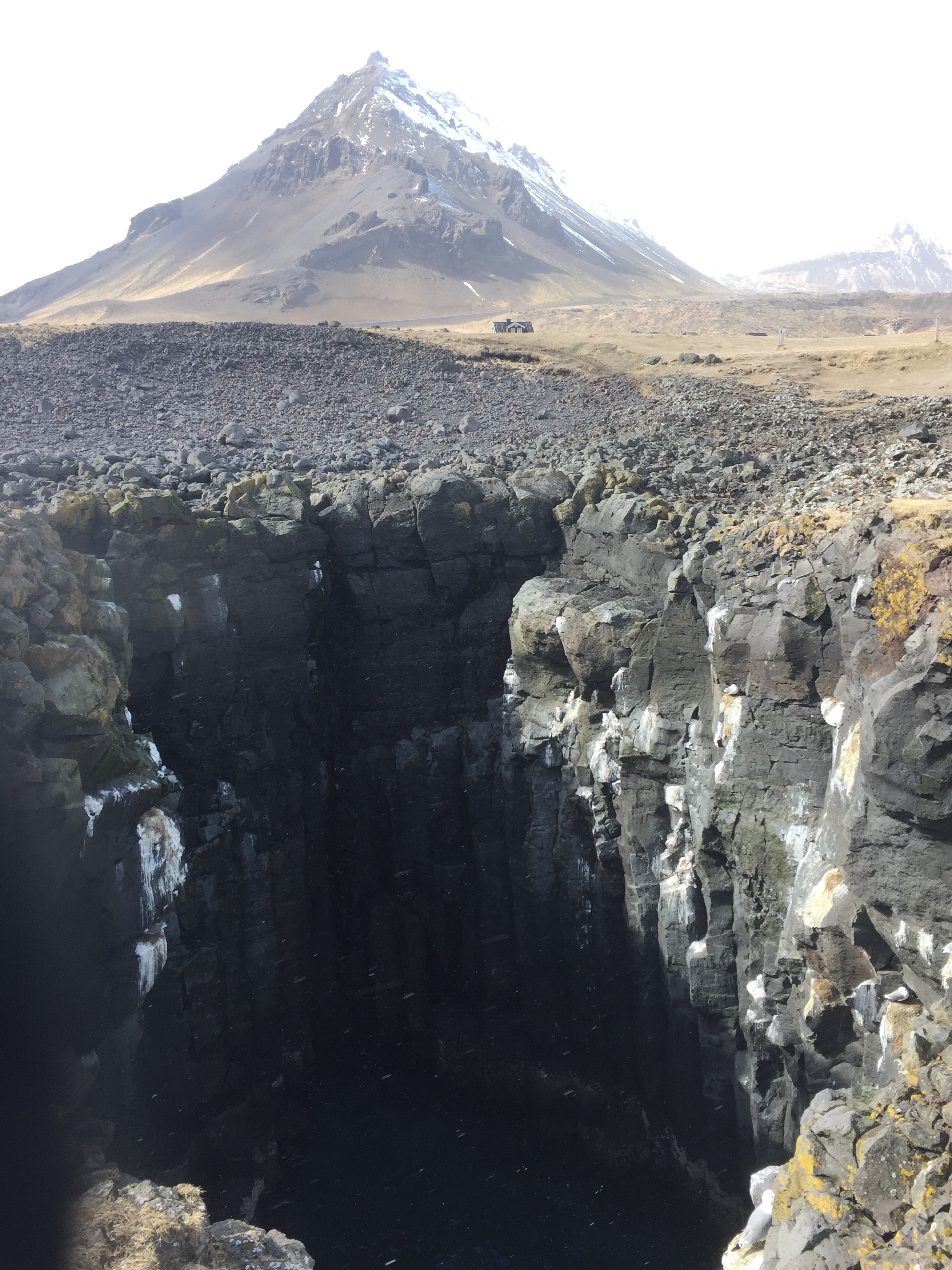 Our second day was a day trip to the Snaefellsnes peninsula, which ended up being my favorite day of the trip! Like our others, it started with a breakfast at Joe and the Juice in downtown Reykjavik. After that we had a scenic drive going northward along the coast, the most exciting part of which was our journey through the Hvalfjordur tunnel. It’s nearly 4 miles long and reaches a depth of 500 feet, which surprised our group the first time going through. Especially Jared, who tried doing that thing where you’re supposed to hold your breath through tunnels. Once we reached the peninsula itself, our idea was to just drive around until we found something we wanted to stop at. And boy, did we ever!
