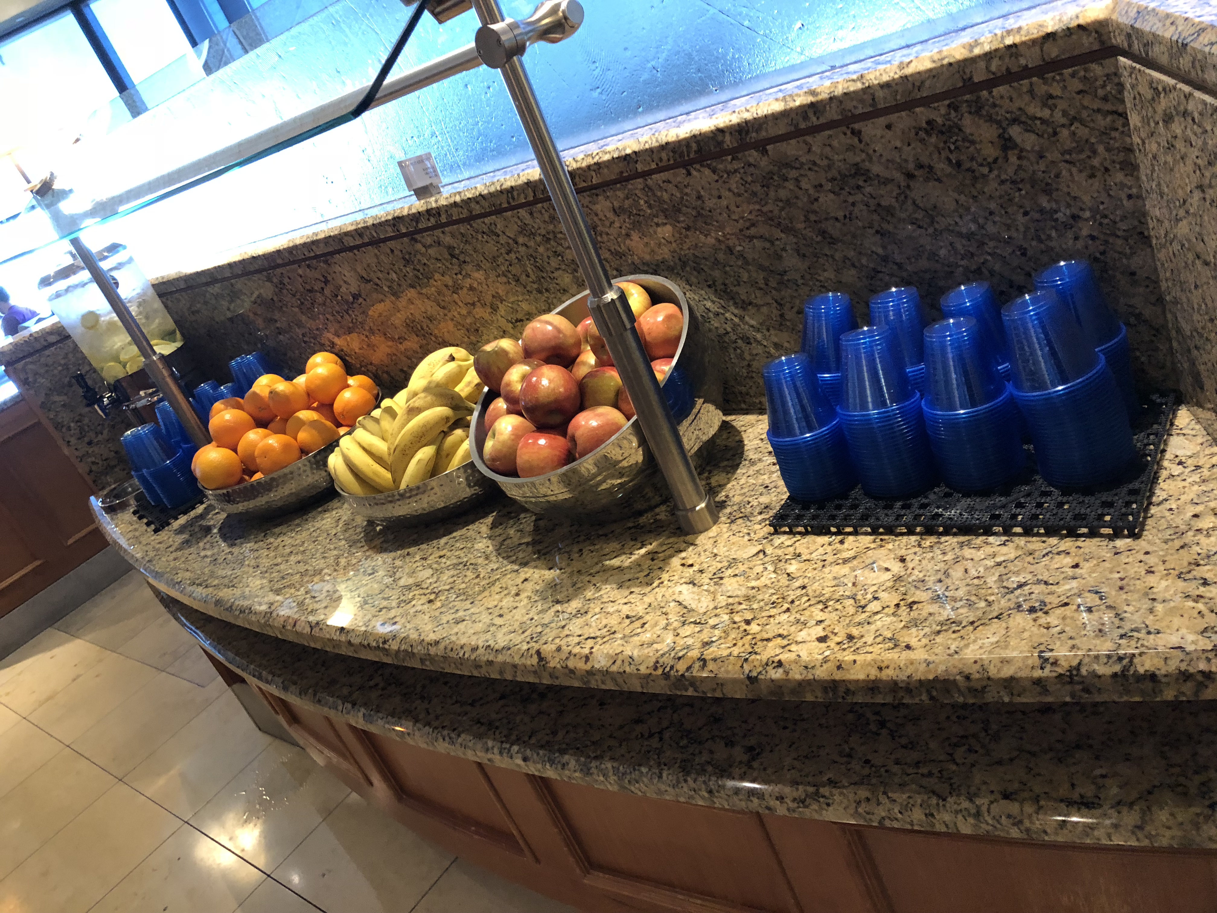 So, is the United Club worth a stop if you have access? I find it more comfortable than the terminal, and some seat is usually guaranteed, so I’ll usually enter if I have time. However, I wouldn’t arrive at the airport early for it unless I thought I’d be more productive here than anywhere else I might work that day. I’ve come here early for say, noon flights where it wasn’t worth the detour to the office for being able to see coworkers that morning. And one key to productivity is snagging one of these desks. It isn’t impossible to be productive without it, but it does get considerably harder for me. I also stop by here to give my electronics some extra charge, rather than scouring the terminal for a port. And if I’m willing to choke down a banana (I hate bananas), then I’ll also stop to pick up a couple of those. All in all, I wish they’d improve the food offerings here, but that’s really my only complaint about the lounge, as it’s solid overall.