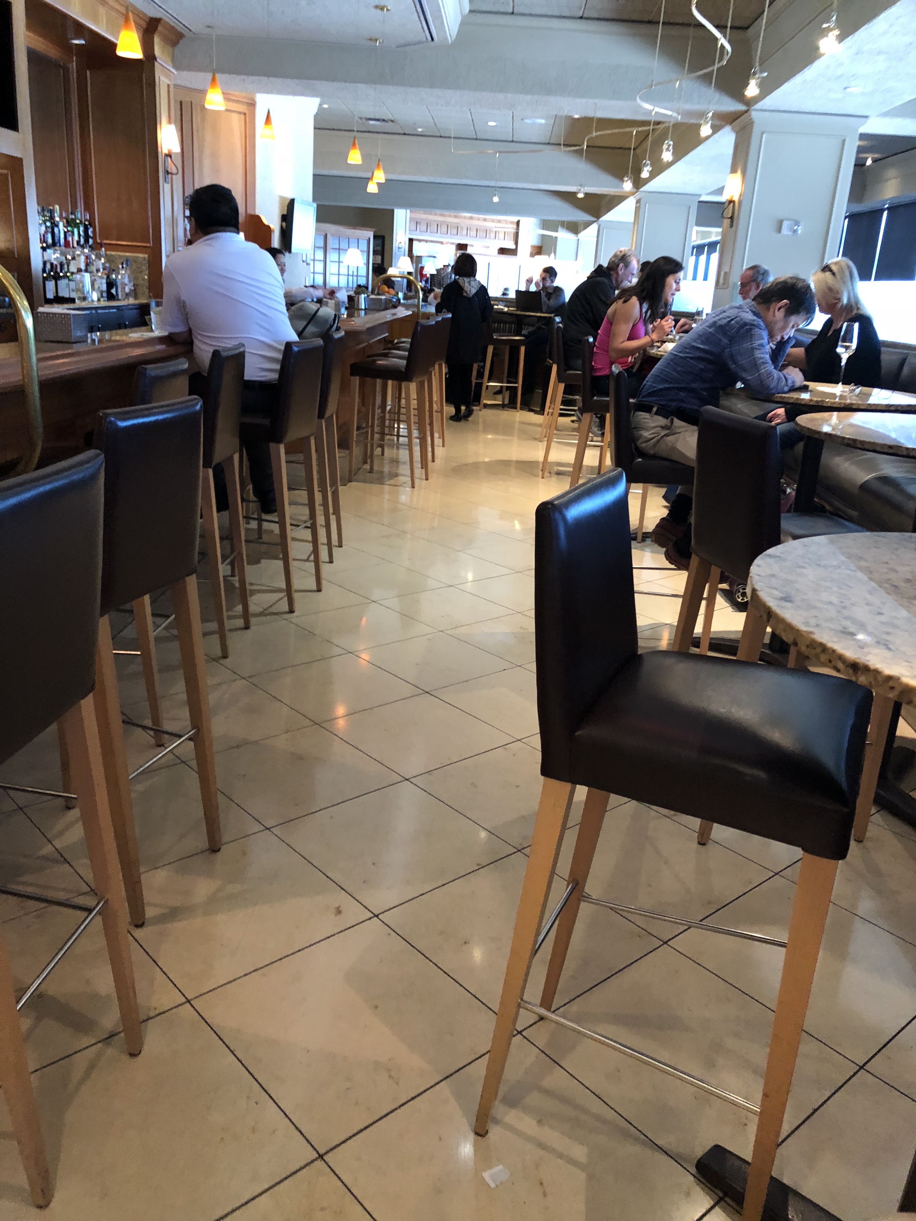 There’s all sorts of seating in the main areas of the lounge, from bar stools and countertops to couches with views of the apron and United’s domestic terminal. Even though it’s a hub lounge, I’ve never seen the seating fill up during the few times I’ve been here.