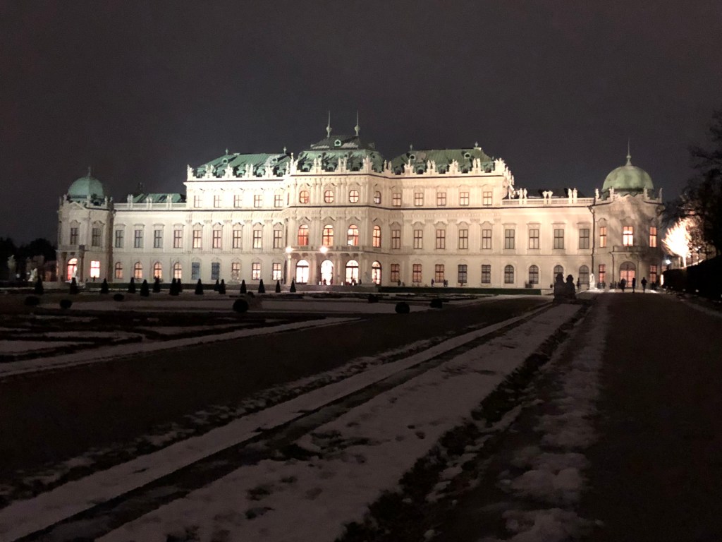 The daylight hours are not long in European Decembers, and the sun was already starting to fade as we reached the Belvedere palace around 4:30 p.m. It was elegant without being flashy, and definitely less opulent than the other two palaces we saw. An entry ticket gave us access to the palace itself, and a museum of paintings on the opposite side of a wide garden. The rooms of the palace were filled with paintings rather than the original furnishings, so it was hard to imagine what it would have been like if someone actually lived there. Another surprise for me was that Napolean’s portrait was featured prominently in one room. As an enemy of the Hapsburgs and the one who decimated their armies at the battle of Austerlitz, I would’ve thought they’d opt to leave him out. On our way out we saw a modern art installation nearby and decided to do a quick visit. It featured a lot of Yoko Ono art pieces, and even a set of ping pong tables. That was our last stop before continuing on to get dinner, which is covered in the food installment.