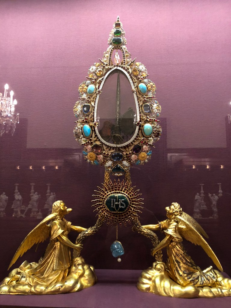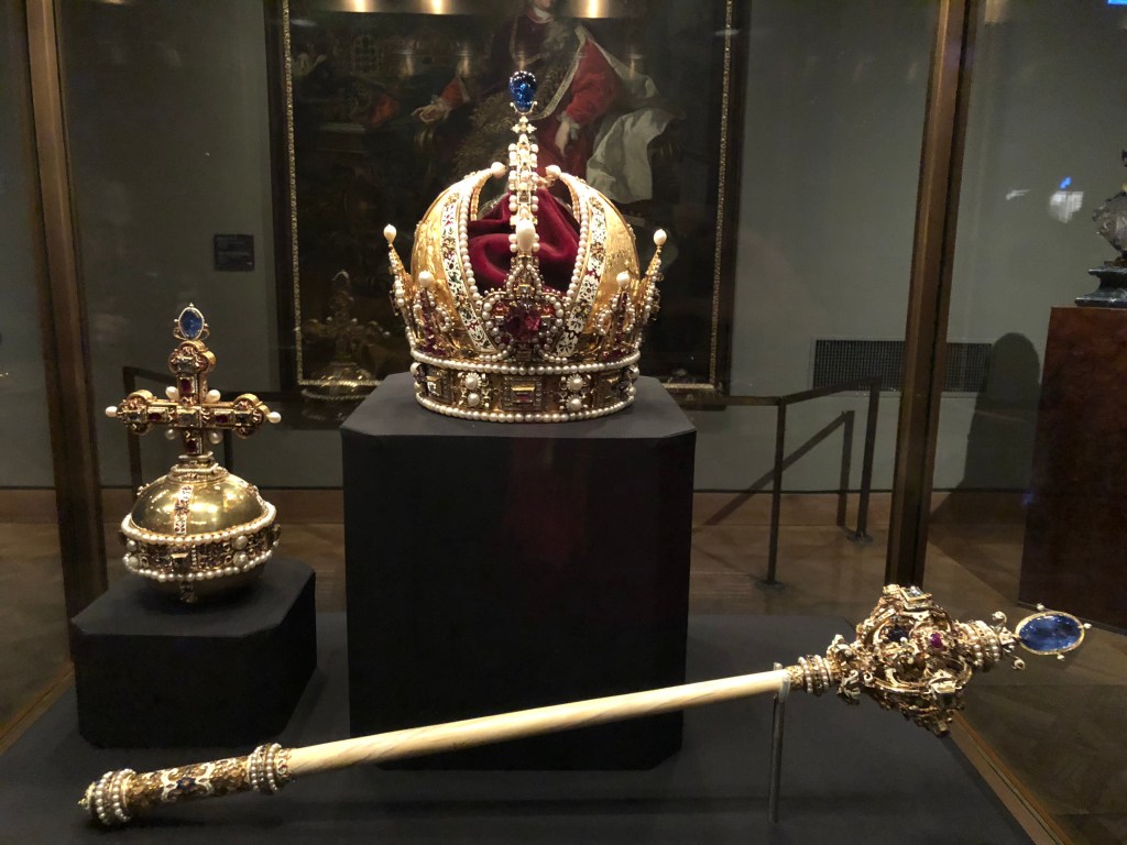 Although the rest of my party slept in ahead of our train ride to Budapest, I woke up early enough to spend an hour at the Imperial Treasury museum the next morning. I was interested in visiting because of Vienna’s status as the former head of the Holy Roman Empire. And I must say, its collection did not disappoint. Featured near the beginning were the scepter and orb, as well as the emperor’s crown. Whenever I see regalia like this, I’m still in awe that a relic reserved for a select few for so long is now accessible for someone like me to see for just $10. There was a collection of robes, including the ones Napolean wore at his coronation in Notre Dame as the new emperor. Most impressive to me though was the craftsmanship for large gems, or pieces of gold leaf. The world’s largest full emerald was a set piece in this exhibit. Imagine being the fellow tasked by the nobility with handling that, and what the consequences would be if you messed up. An assortment of roses sculpted in gold leaf also caught my eye. They were so intricate as to even be adorned with thorns. Last was an enshrinement of a nail said to have been part of the crucifixion of Christ. But it had only been traced back to the Crusades, making me skeptical that they could’ve just picked any old nail… Anyway, after about an hour it was time for me to meet my friends at the AirBnB and catch our train to Budapest!